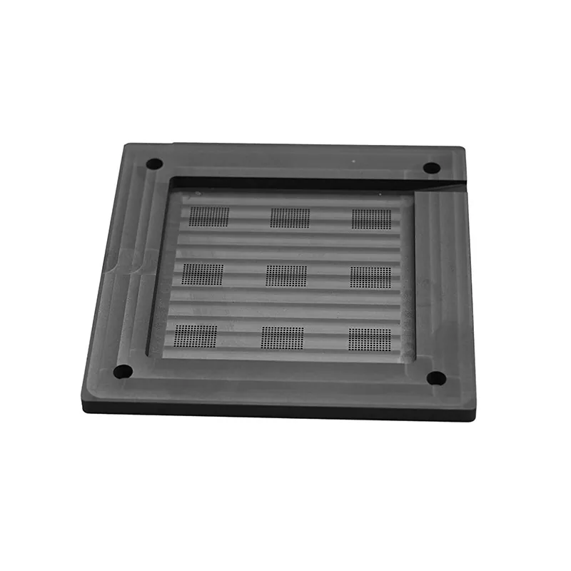 A2: I nostri dispositivi di posizionamento delle sfere in grafite hanno una planarità superficiale controllata entro 0,002 mm/m e una rugosità superficiale Ra ≤ 0,4 μm. Questa estremamente elevata planarità e levigatezza della superficie garantisce un contatto uniforme con il truciolo e il substrato, evitando difetti di posizionamento delle sfere causati da irregolarità della superficie.